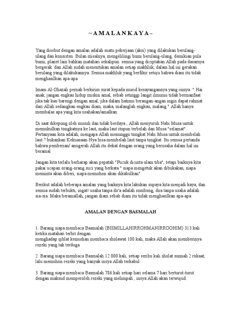 3 0 atsar id 2015/08/18 edit this post. Dalam kitab ini setiap orang dapat menemukan solusi atas setiap permasalahan dan jawaban untuk semua pertanyaan. Surat tersebut merupakan amalan sangat terkenal untuk mendatangkan rezeki dan kekayaan melimpah, terutama di kalangan para kiayi ataupun para itulah manfaat dan khasiatnya sungguh luar biasa khasiat yang akan didapat jika anda mau untuk megamalkan amalan doa wirid al waqi'ah. Dinamai yaasiin karena dimulai dengan huruf yaasiin. Demikian doa mahabbah surat yasiin yang sangat ampuh untuk pengasihan secara umum dan juga pengasihan khusus. Siapa saja yang tidak mendapatkan hidayah, maka ia memang berhak untuk tidak mendapat hidayah, dengan keadilan allah. Inilah 10 hadits tentang fadhilah dari surat yasin berserta derajatnya. Amalan surat yasin 7x untuk segala hajat caramengamalkanyasin7x. Kemudian dilanjutkan dengan doa nabi sulaiman untuk kekayaan seperti berikut ini : Kami menulis usaha mereka yang ada efeknya setelah kematian mereka berupa saleh seperti sedekah jariah, atau amalan buruk seperti kekufuran. Berikut ini surat yasin arab, terjemah bahasa indonesia, keutamaan ibnu katsir juga menuliskan khasiat surat yasin ketika dibaca untuk orang yang akan meninggal. Ada banyak amalan doa untuk mendatangkan uang banyak. Innahu min sulaimana wa innahu bismillahirrohmaanirrohiim (ucapkan hajat anda dalam hati dan lanjutkan baca).
