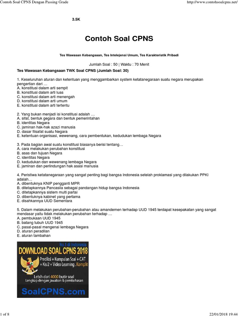 Contoh Soal Cpns 2018 100 Soal Dan Jawaban Test Perangkat Desa Cat Pancasila Dan Uud 1945 Part 3 Icpns from icpns.org Recent papers in soal cpns uud 1945. Tes ini tentunya akan menjadi kelompok soal yang pertama kali di uji oleh pelamar cpns tahun ini. Sumber dari segala sumber hukum 4. Jawaban contoh soal cpns pancasila. Tes skd perlu latihan khusus agar bisa diterima dengan nilai yang maksimal. 22 pernyataan yang bukan contoh perilaku konstitusional dalam kehidupan berbangsa dan bernegara adalah …. 50%(2)50% found this document useful (2 votes). Contoh soal cpns sudah banyak beredar di internet.