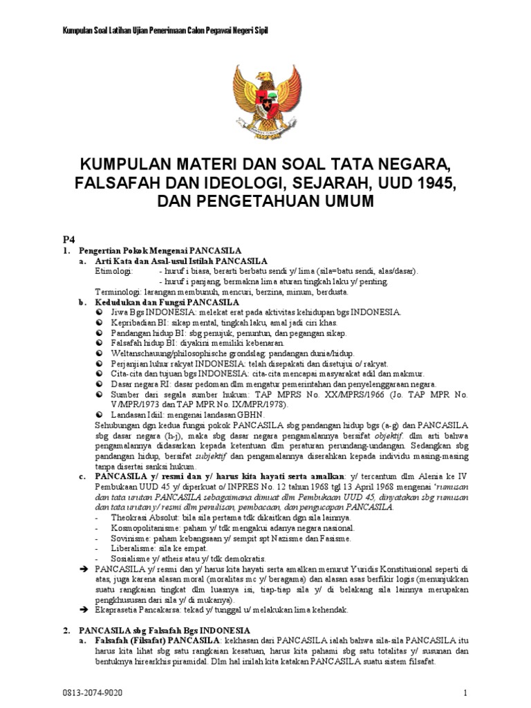 Rumusan pancasila yang resmi terdapat dalam a. Menciptakan kerukunan hidup menuju masyarakat adil dan makmur 2. #new #cpns #twk #uud1945 kupasn tuntas beberapa soal yang berkaitan dengan materi tes wawsan kebangsaan yang merupakan salah satu soal yang keluar di tes. Kita bisa mendapatkannya dengan mudah. Sumber dari segala sumber hukum 4. Artikel belajar dan membahas soal cpns ini kami susun tanpa menyertakan link download soal cpns. Contoh soal cpns tes wawasan kebangsaan, tes intelejensi umum, tes karakteristik pribadi. Saat ini, kamu dapat memperoleh latihan soal cpns 2020 online maupun offline. 50%(2)50% found this document useful (2 votes). Kunci jawaban contoh soal cpns. Update contoh soal cpns pancasila. Hal ini bertentangan dengan pasal … uud 1945. Savesave contoh soal uud 1945.pdf for later.